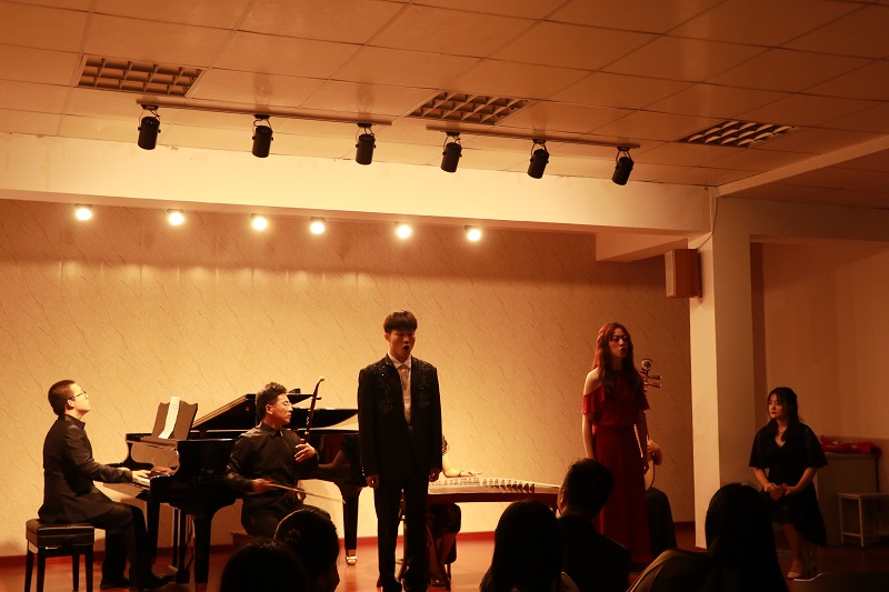 音乐会以一首男声独唱《问》拉开帷幕,歌曲旋律潇洒藴籍从容不迫,含藴不露;吉他重奏《杀死那个石家庄人》,生于理想,死于欲望,描绘了一代人最真实的写照;男声独唱《我的祖国》,一条大河波浪宽,风吹稻花香两岸,歌曲表达刚柔结合;民乐合奏《天使的梦》,意境优美,宛如一个在梦境中舞蹈的仙女,带给人神秘优雅安静的感觉;男声独唱《阳关三叠》,此曲是目前所见的一首中国古琴曲,男声唱出了其该有的韵味;男声独唱《杨白劳》,用其表演和歌声,让观众们深切地感受到了杨白劳的内心世界;女高音独唱《为艺术为爱情》