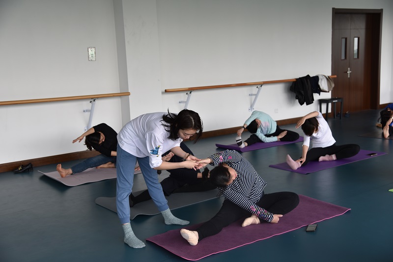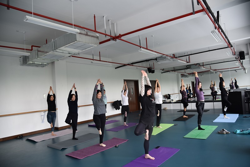 为丰富西太湖校区广大女教职工的课余生活,进一步丰富教职工的业余文化生活,陶冶生活情操,提高健身意识和身体素质,有爱爱 分工会组织教职工于每周一、三中午12:10-12:50开展瑜伽健身运动。在院党总支书记唐琳的带动下,20余名女教职员工参加了训练,院工会副主席李璐老师任领队,特聘舞蹈专业教师王杞娜老师担任教练。学院为老师们专门开辟了训练场馆。