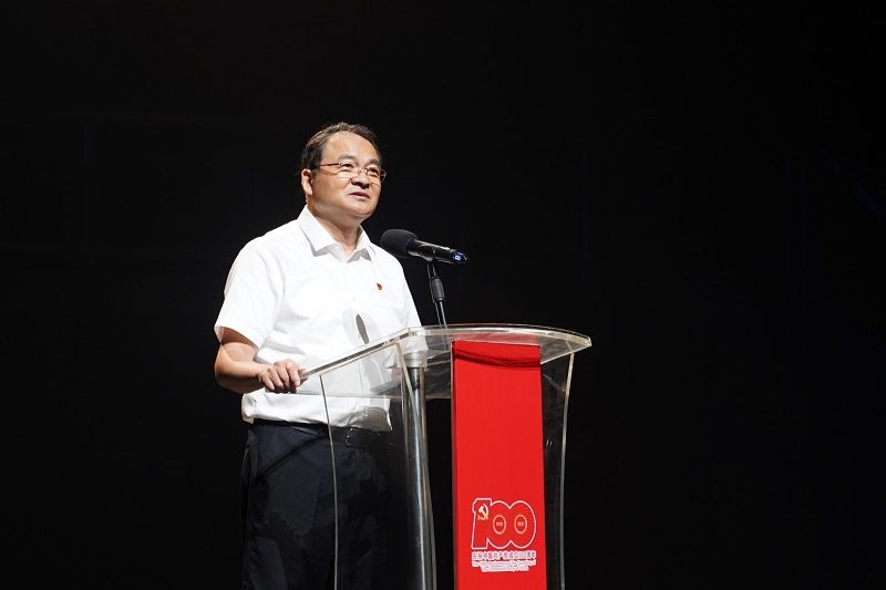 陈群代表常州大学全体师生员工,对各位领导和嘉宾的到来表示热烈欢迎,向全体剧组演职人员致以最诚挚的问候。他指出,常州大学近年来着力打造红色文化特色,开展全方位、多角度、立体化的科学研究与红色文化育人工作,红色文化已然成为学校立德树人、培根铸魂的重要抓手和特色品牌;原创红色音乐剧《白云溪上》的首演,不仅是学校唤醒红色基因,推进思想政治教育的重要举措,也为党史学习教育提供了丰富的精神养料,常州大学将一如既往地落实立德树人根本任务,用好用活红色文化资源,让红色文化超越时空向学生传递强大的道德力量与价值观力量,以润物细无声的方式,教育和引导青年学生把好人生方向,扣好人生的第一粒扣子,培养更多的社会主义建设者和接班人,为常州地方经济社会发展添砖加瓦。