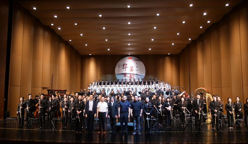 百年风华,乐响江南。为庆祝中国共产党建党100周年, 6月28日晚,由中共江苏省委宣传部、江苏省文化和旅游厅主办优秀舞台艺术作品展演——《华乐苏韵》大型中国管弦乐音乐会在常州大剧院精彩举行,我校龙吟合唱团作为特邀嘉宾加盟演出。江苏省音协主席朱昌耀;江苏省文旅厅艺术处二级调研员许其兵;苏州民族管弦乐团顾问成从武;常州大学党委书记陈群,党委常委、副校长陆锦冲;常州市文化广电和旅游局艺术处负责人出席演出,与千余名常州市民一同欣赏这场艺术盛宴。