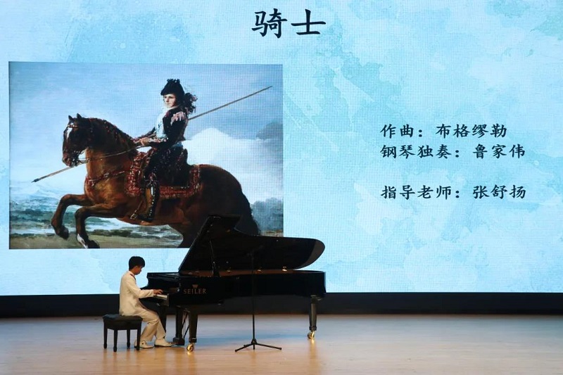 音乐会以《G大调小奏鸣曲》拉开帷幕,乐曲活泼流畅的节奏和短促华丽的八分音符颤音组成了欢乐的旋律,充满了明朗的情绪色彩和青春气息。《催眠》以“一二三岁,四五六岁千秋万岁”梦呓一般的细数展现似是催眠的意境,令人涌现出恍如隔世的感觉。《骑士》全曲借由C大调明亮开朗的调性特点,通过短暂、连续的八分音符,马儿神气的步伐生动地表现出来。《G大调布列舞曲》旋律跳跃灵动,时而跳动,时而连绵起伏,充满无穷的想象。音乐《牧民歌唱毛主席》深情而又真挚,演奏出牧民对新中国伟大领袖的深切感情与敬仰。《G大调布列舞曲》布列是一种法国舞曲,以弱拍开始,节奏华丽,气质稳重,时而清新内敛,时而庄严肃穆。《白桐曲》乐曲具有鲜明的河南音调,为缅怀革命先烈焦裕禄书记而作。句与句之间,留有余地,音与音之间,相互成全,如泣如诉,柔美动人,令人沉醉。《勒士豪恩练习曲》演奏者情绪饱满、生动、有力。积极调动手指关节,让练习曲中的每一个音符都充满了无限的力量,赋予这首练习曲神圣的氛围。《敕勒歌》选自《乐府诗集》,是南北朝时期黄河以北的北朝流传的一首民歌,演唱出北国草原壮丽富饶的风光,与敕勒人热爱家乡热爱生活的豪情。《拜厄练习曲》演奏者把乐曲中跳动的音符与流行的节奏演绎的栩栩如生,纤细轻巧的手指与键盘翩翩起舞,赢得观众阵阵掌声。《海洋之波》旋律轻快,给人一种舒心的感觉,海浪静静飘向沙滩。思绪随着风飘向远方,此刻没有烦恼,只有宁静的美好。《日月与星辰》是一首抒发海峡两岸同胞思念之情的歌曲。该曲的语气感十足,旋律委婉,情绪激动高昂,各类情感交织在一起,演唱出海峡两岸人民盼望祖国能够早日实现统的思想感情。《爱永在》是一首复二部曲式的作品,歌词在朴素平易中饱含诗情,透露出浓浓乡情与音乐旋律所表达的情感有千丝万缕的联系,演唱出对祖国至死不渝的爱,打动在场观众的心