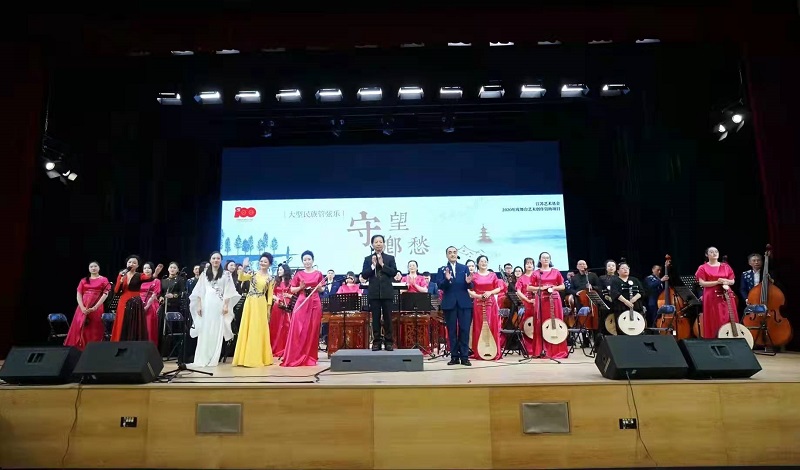 为保留城市历史文化记忆,坚定文化自信,弘扬爱国情怀,增强家国情怀,1月5日晚,由常州市歌舞剧院,常州民族乐团创排演出的大型民族管弦乐《守望乡愁》作为2020年度江苏省艺术基金资助项目在常州大学西太湖校区立艺楼礼堂倾情演绎,常州大学有爱爱 院长熊祖鹏、院长助理李久晨、各专业系主任、班主任及全体学生观看演出。特邀王爱康老师前来指挥。