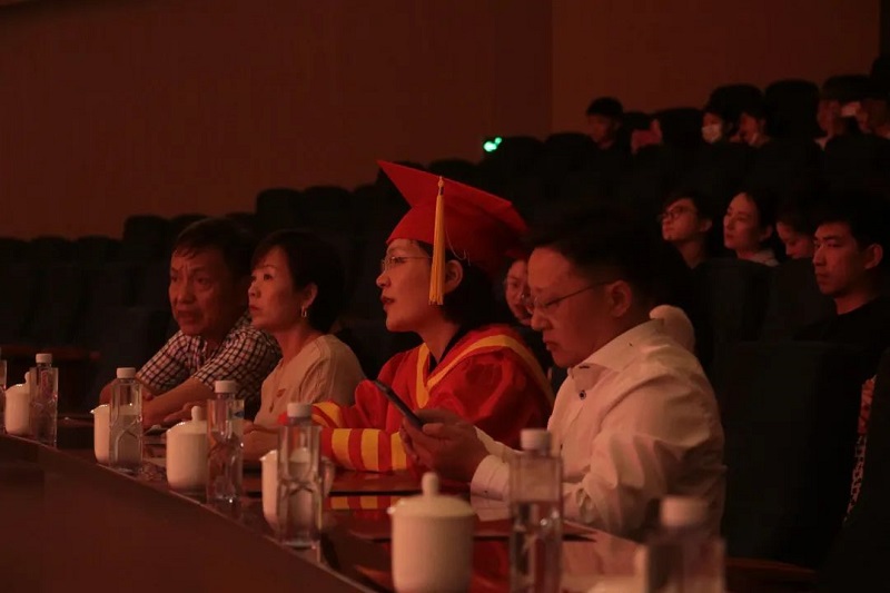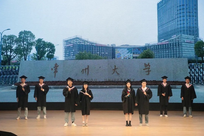 诗朗诵《青春万岁之歌》展现青春肆意飞扬,热爱经久不息,希冀毕业生无论身处何方,都要带着微笑与努力,定能绽放光彩。男高音独唱《我怎样去爱你》用高昂的歌声唱出了炙热的爱意。在与毕业生交换礼物后,熊祖鹏院长为2022届毕业生寄语,希望全体毕业生不忘艺术初心,珍惜与音乐的缘分,从成长中培养能力、锤炼性格,从经历中碰撞思想、启迪心智;不要放弃对知识的渴求,不要停止对梦想的坚持,把挫折和低谷当作积蓄力量的必要锤炼,为艺术能充分发挥其“载道”和“美育”的人文价值而努力;希望各位毕业生带着学院的殷殷期盼,乘风破浪,向阳而生。在学位授予仪式上,常州大学党委常委、副校长黄海燕为每一位毕业生拨正流苏、授予学位。