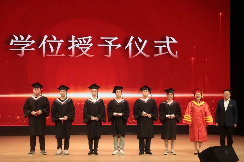 诗朗诵《青春万岁之歌》展现青春肆意飞扬,热爱经久不息,希冀毕业生无论身处何方,都要带着微笑与努力,定能绽放光彩。男高音独唱《我怎样去爱你》用高昂的歌声唱出了炙热的爱意。在与毕业生交换礼物后,熊祖鹏院长为2022届毕业生寄语,希望全体毕业生不忘艺术初心,珍惜与音乐的缘分,从成长中培养能力、锤炼性格,从经历中碰撞思想、启迪心智;不要放弃对知识的渴求,不要停止对梦想的坚持,把挫折和低谷当作积蓄力量的必要锤炼,为艺术能充分发挥其“载道”和“美育”的人文价值而努力;希望各位毕业生带着学院的殷殷期盼,乘风破浪,向阳而生。在学位授予仪式上,常州大学党委常委、副校长黄海燕为每一位毕业生拨正流苏、授予学位。
