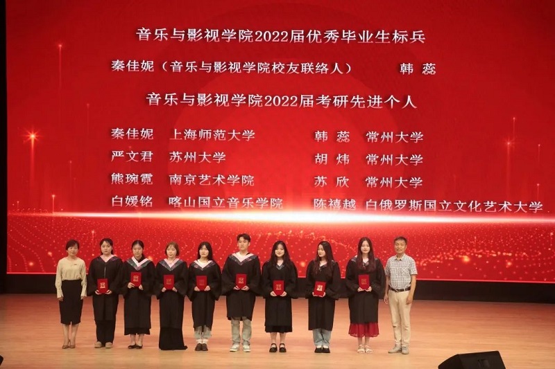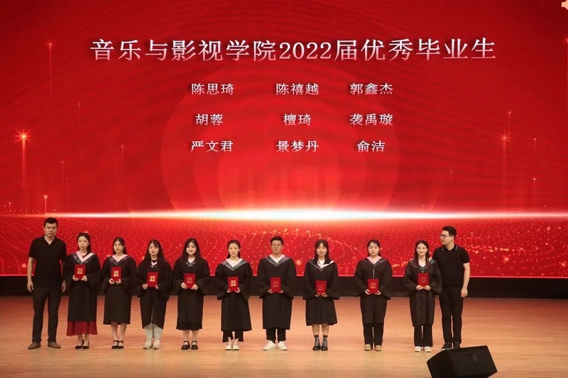 毕业典礼在庄严的国歌声中拉开帷幕,开场节目《龙韵》继承丝竹古韵的意趣与传统,融汇现代音乐的技法与思维,以雅俗共赏的音乐语言赞颂“龙的传人”勤劳勇敢的品质和砥砺奋进的风貌。歌曲《百年》讲述了百年党史的光辉岁月,讲述了蓬勃的青春、挥洒的汗水,激励大家秉持建党、建团精神,立鸿鹄志、做奋斗者。钢琴四手联弹《贝加尔湖畔》将所有观众都拉入青春的美好回忆中,青春的的酸甜苦辣为这首曲子赋予了浪漫的金边。在表彰环节,学院为优秀毕业生、优秀毕业生标兵、考研先进个人进行表彰,充分发挥榜样的作用,激励广大音乐学子拼搏奋进,昂首向前。男女声四重唱《诗人的旅途》将夏天的遇见与告别展现的淋漓尽致,来路总有潮起潮落,那才是人生旅途的意义。