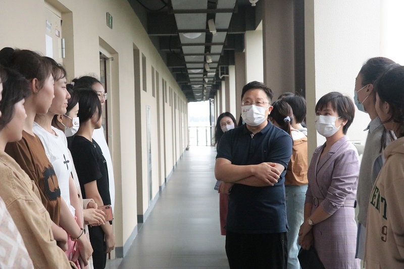 宿舍楼内,学院领导们同新生亲切交谈,询问了同学们的来校方式以及家庭情况,仔细听取了同学们的入学感想以及理想规划,并对同学们的到来表示了热烈的欢迎。院党总支书记唐琳指出,学院会帮助同学们快速适应、融入大学生活,开启人生的崭新阶段。院长熊祖鹏指出,大学与高中的学习生活截然不同,要求同学们及时调整学习方法和学习模式,坚持良好的学习习惯,期待同学们能够培养艺术家的品质与情怀,珍惜韶华,刻苦钻研。