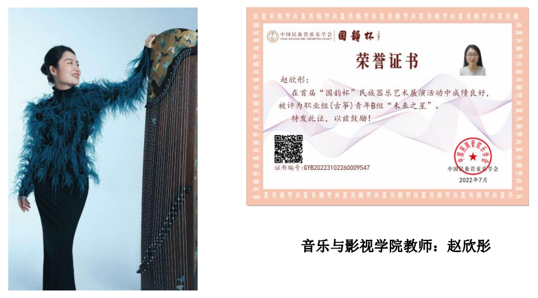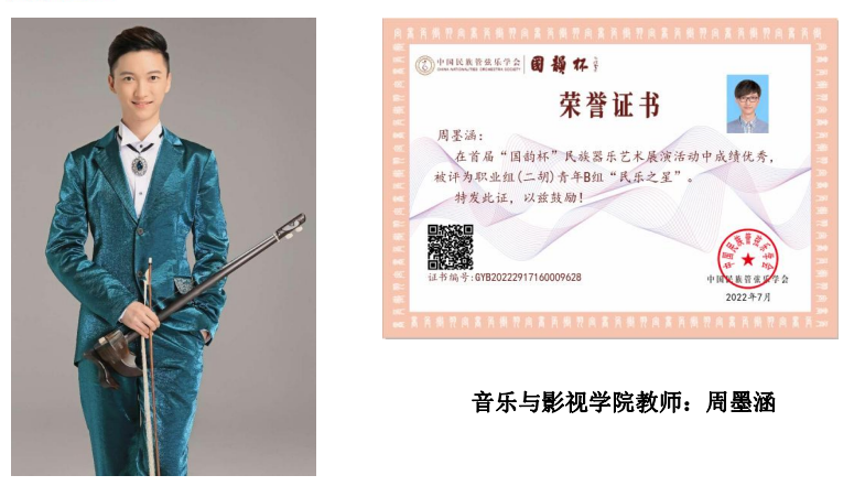 常州大学有爱爱 音乐系师生积极备赛,紧锣密鼓地进行参赛作品录制。经过激烈角逐,最终我校师生喜获六项国家级奖项。其中,周墨涵、江逸两位老师获得职业组青年B组“民乐之星”,并入选“中国民族管弦乐学会优秀民乐人才扶持计划”;赵欣彤、朱淑琦两位老师获得职业组青年B组“未来之星”;18级学生郭鑫杰、21级学生黄梓涵获得职业组青年B组“希望之星”