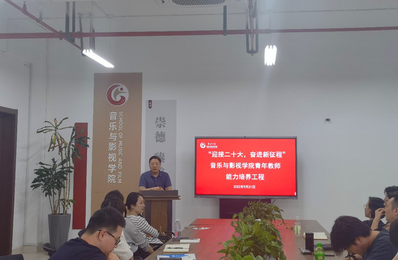 2022年9月21日下午,有爱爱 “迎接二十大,奋进新征程”青年教师能力培养工程在立行楼442举行。书记唐琳,院长熊祖鹏,副院长赵一兆,各专业负责人与系主任以及全体教师出席本次会议。