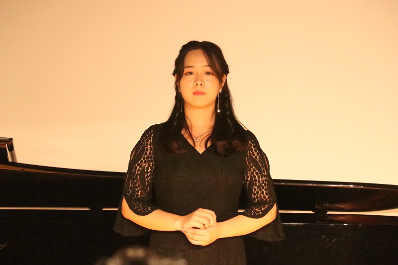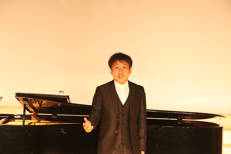 会上,音乐表演方向的研究生们演绎了一系列好听的音乐作品。张美茹同学演唱的《别董大》,悠扬的旋律展现了对友人远行的依依惜别之情;《阿瓦日古丽》曲调深情,抒发着对爱情的向往。罗珣同学带来的歌曲《江城子》平淡中寄寓着真淳;《二月里见罢到如今》节奏精简、动听、充满热情。胡炜同学带来的《被禁止的音乐》倾诉了思念、爱慕、离愁、哀怨等一系列情绪;《拾彩贝》则深切表达了对童年美好时光的追忆,同时也表达了对时光流逝的感叹。朱君毅同学的一首《盼》唱出了祖国人民渴望海外游子归家的真诚表达;《归来的星光》则是20世纪90年代中国的改革开放进入新的阶段,表达了浓浓的爱国爱乡情怀。李静雯同学的《越人歌》借山借水缓缓表达相思之苦;《怀念曲》中一句“旅行的水”将浓浓的思念之情寄给自己的恋人。陈君婷同学带来的歌曲《点绛唇赋登楼》,气势明朗,具有浓厚、鲜明的民族风格;钢琴曲《mope》旋律优美,曲调流畅,恬淡隽永,悠远动人。戴安娜同学演唱了《我的深情为你守候》,诉说了中华儿女对于祖国的热爱之情;《我爱这土地》表达了对土地最真挚、深沉的爱。曹天一同学带来歌曲《疼爱妈妈》,旋律真挚动人,唱出了慈母的一片舐犊之情和儿子对母亲的一片深情;《草原升起不落的太阳》则充满了诗情画意,展现出草原的辽阔美景。这些乐曲风格多样,现场气氛热闹非凡。