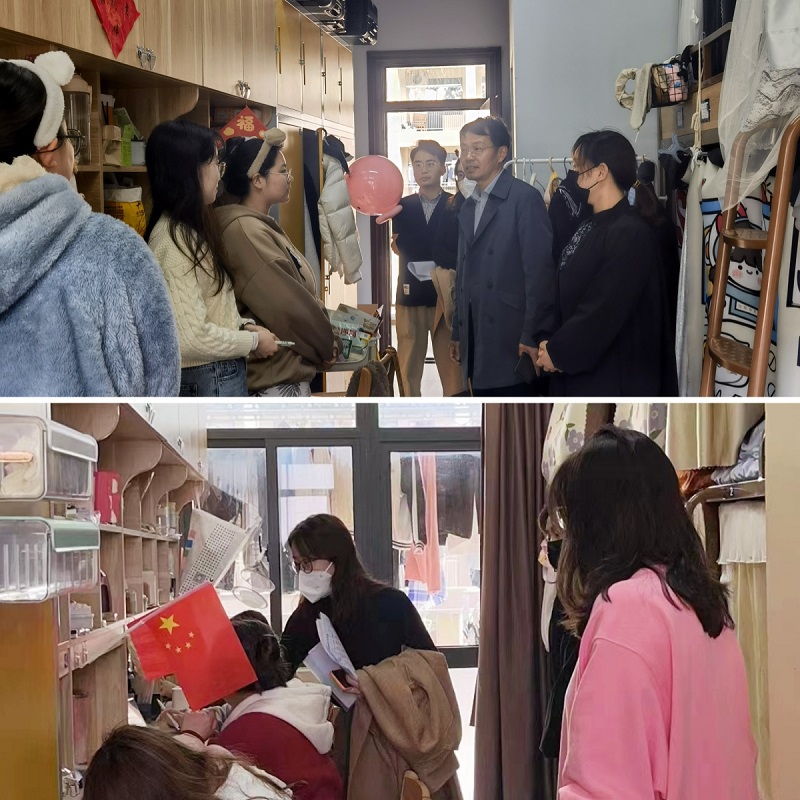 3月9日上午,院党总支副书记褚衍松带领全体辅导员老师走访了学生宿舍,就宿舍安全、卫生、环境和学习情况等方面与学生亲切交流,叮嘱宿舍内的同学要提升安全意识,共同营造和谐文明、舒适温馨的宿舍环境,要加强朋辈交流,养成好学、乐学、善思、修身的生活方式,共同营造爱学习、讲团结、扬正气的文明宿舍。