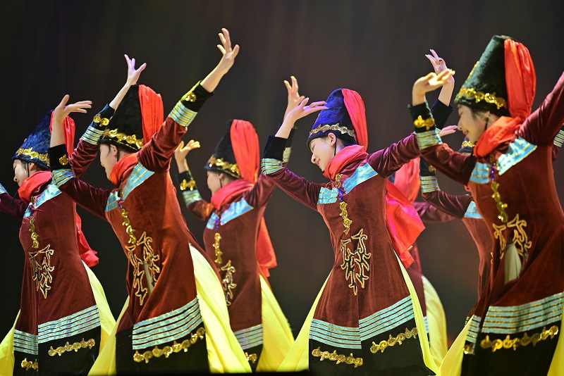 活动中师生身穿各民族特色服装进行形式多样的舞蹈表演,将各民族优秀文化引入课堂教学展演、融入校园文化建设,不断提高师生中华民族共同体意识认同度。