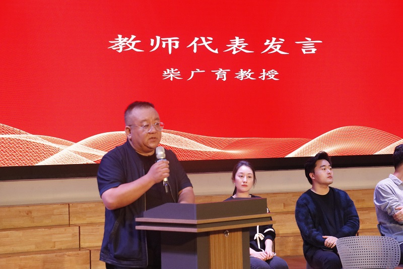 教师代表柴广育鼓励大家应勇于承担责任,对自己、对父母、对社会负责;做到学以致用,培养自主学习和独立分析、解决问题的能力;勤于沟通,汲取周围人的宝贵经验;拒绝躺平,不断用知识武装自己、成就自我。随即,各系系主任分别为在场同学寄语。