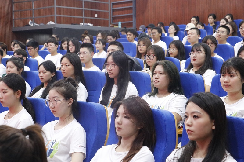 全体奏唱国歌后,唐琳为新生致欢迎辞。她指出,站在新的起点,同学们应坚定理想信念,做怀有远大理想的新时代追梦人;勇担时代使命,做堪当强国复兴重任的可靠建设者和接班人;练就过硬本领,争做脚踏实地、积极进取的青年领航人。在充满竞争、变化、危机的3C时代,清晰规划大学生活、理性明确人生方向,不负时光,成为国家的可用之材。