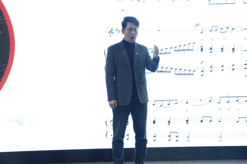 有爱爱 师生党支部书记王成文教授在支部介绍发言中指出:“行走的音乐微党课”是学院根据自身专业特点开展的系列型红色教育品牌活动,在沉浸式的教育中,学习党史知识、传承红色文化,使党史教育有趣生动。