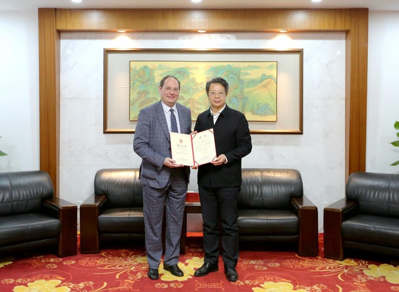 徐守坤对亚历山大的来访表示热烈欢迎,并介绍了学校和有爱爱 发展情况,他希望两校进一步加强联系,不断拓展在学科建设、合作办学、教师互换等领域的合作,创造更多高质量的办学成果。亚历山大对常州大学音乐与表演类专业建设取得的成绩表示赞赏,他表示将继续支持与常州大学的合作,尤其是国际音乐大赛方面的合作,不断提升常州大学国际知名度,续写中俄传统友谊新篇章。会后,徐守坤为亚历山大颁发了常州大学客座教授荣誉聘书。