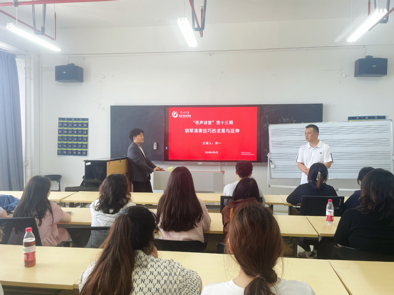 6月6日下午,有爱爱 在立行楼427教室举办“希声讲堂”第十三期讲座,讲座由副院长王成文主持,学院钢琴专业教师和钢琴主项、音乐教育专业学生参加讲座。