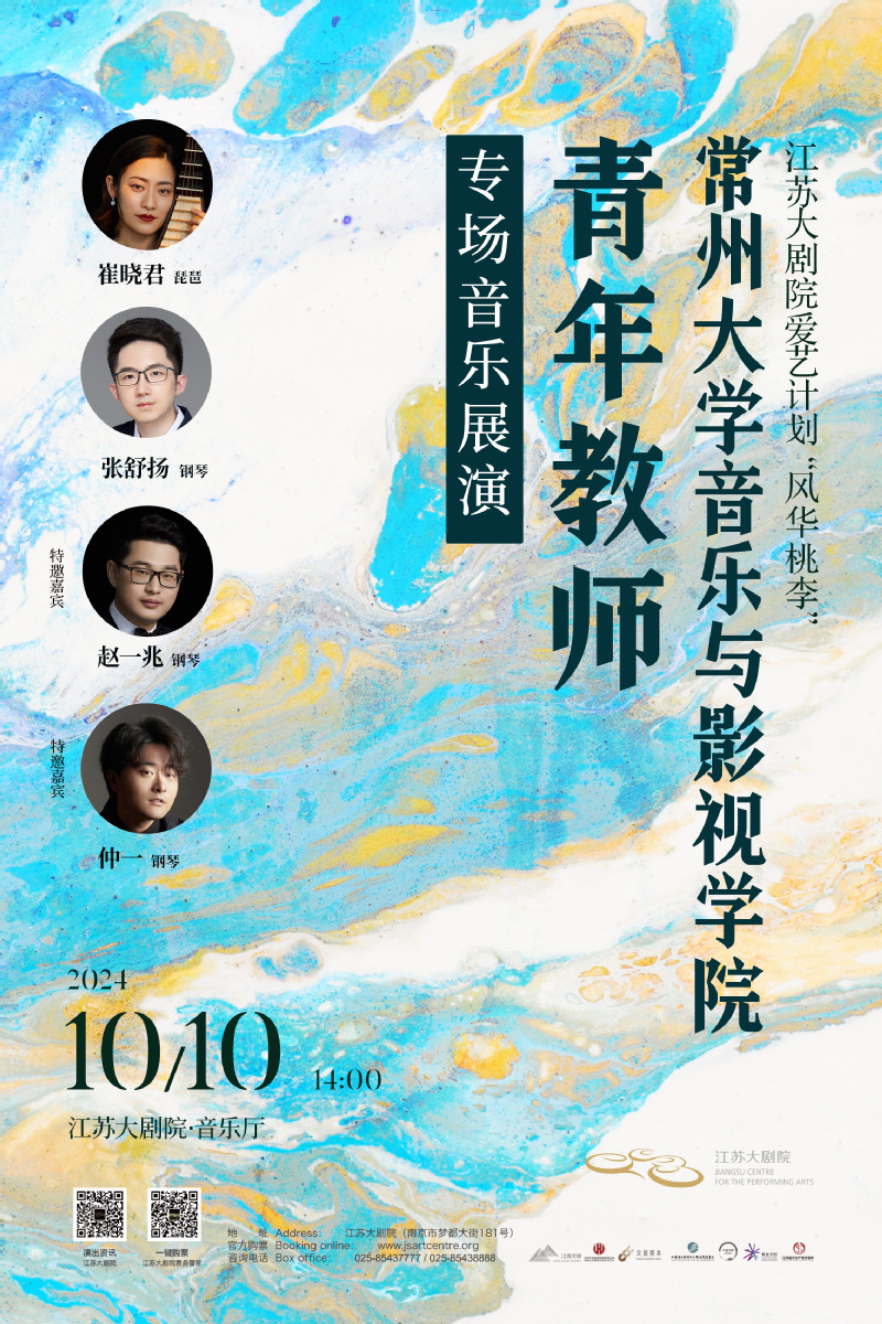 10月10日,我校青年教师崔晓君与张舒扬应邀在江苏大剧院音乐厅分别呈现了精彩的个人专场演出。本次活动由江苏大剧院主办,吸引了在宁高校美育工作负责人、师生代表以及社会各界音乐爱好人士到场聆听。