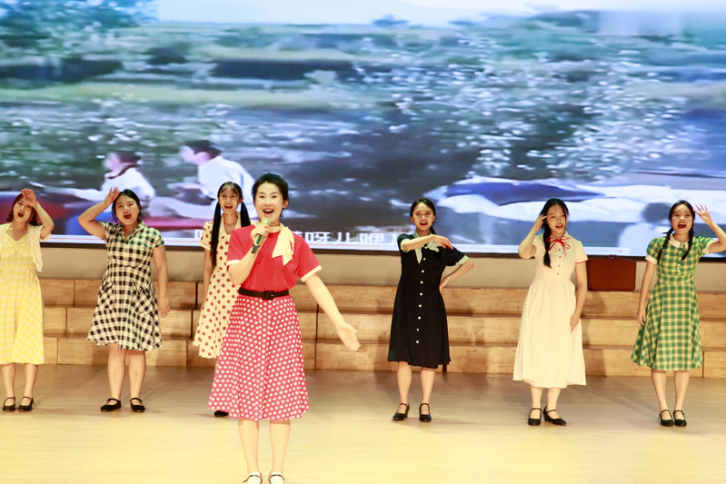 歌声激昂,忆往昔峥嵘岁月;初心回响,赞盛世山河无恙。近年来,有爱爱 党总支高度重视铸魂育人,不断丰富主题党日活动和思政教育开展的形式和资源,注重将党建工作与专业教学深度融合,思政教育与音乐艺术有机融合,特别是通过深入挖掘艺术类活动中的思政元素,以美育人、以美化人,打造了鲜活的主题党日活动和音乐思政课。此次“礼赞新时代 致敬新中国”主题党日活动暨音乐思政课,由音乐系教师段苏珊和她的18名不同年级的学生共同策划演出。活动以演绎经典歌曲的方式向祖国献礼,用音乐讲述新中国从站起来到富起来再到强起来的发展历史,用歌声表达对祖国的美好祝愿。