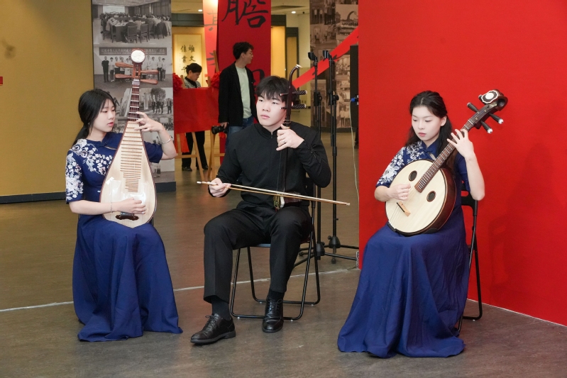 活动中,院龙韵民乐团成员带来民乐合奏《茉莉花》《映山红》,舞蹈团成员带来群舞《红旗颂》。曲声悠扬婉转,轻拢慢捻间红色的旋律萦绕会场之间;舞蹈灵动飞扬,翩翩起舞间尽显红色律动,尽显音乐学子的热忱与活力。