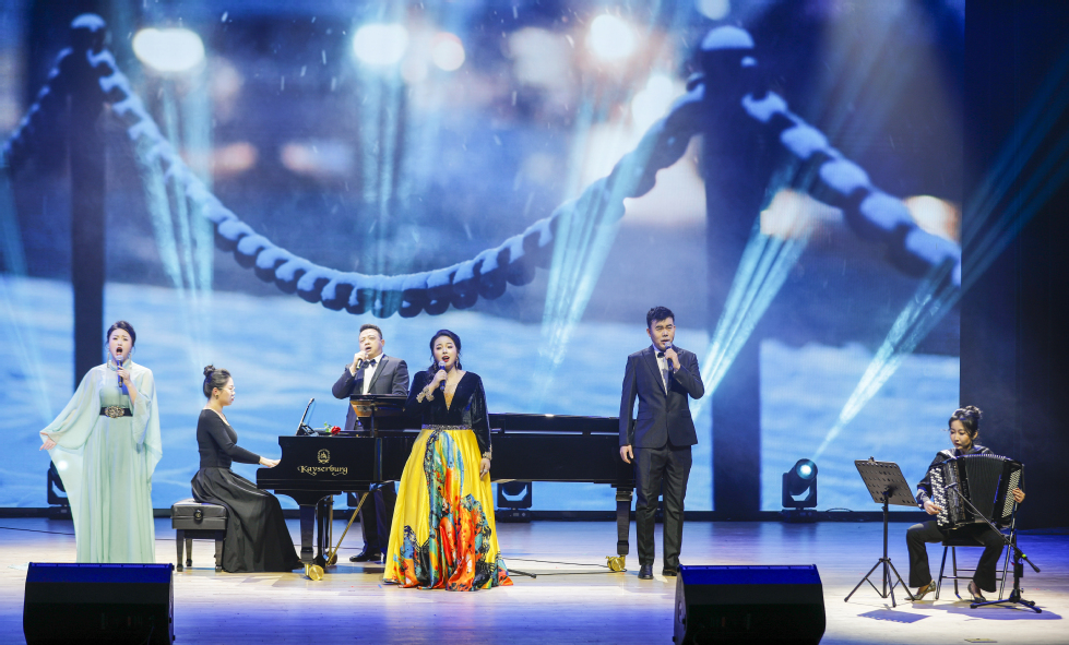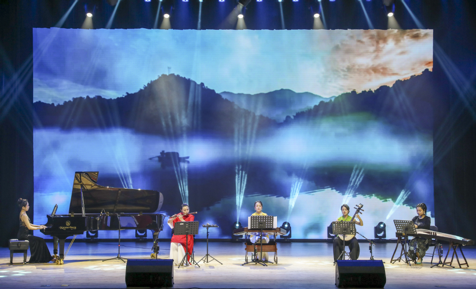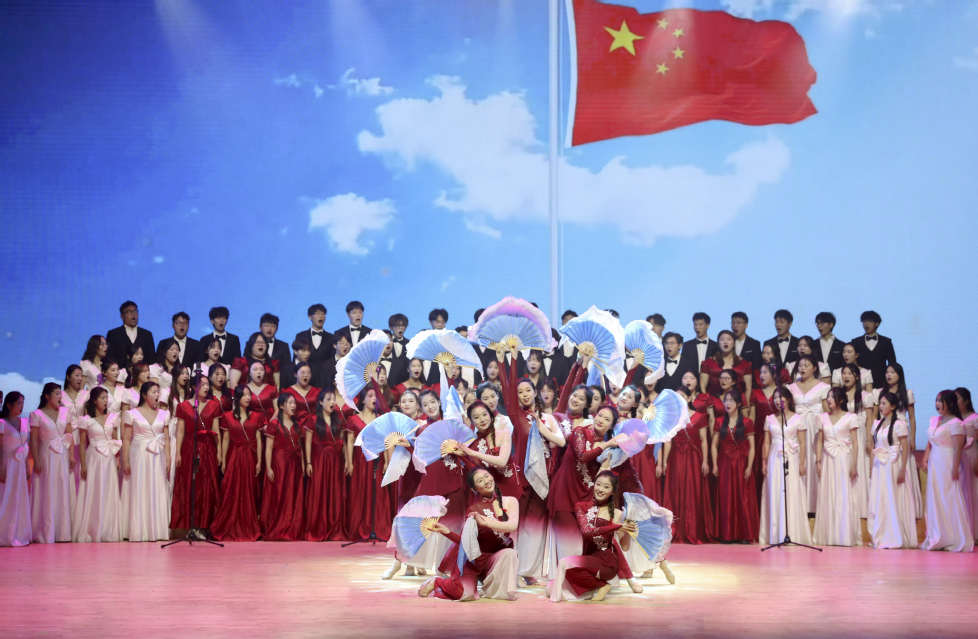 激昂澎湃的古典舞《黄河》拉开了晚会序幕,以简约而深刻的舞蹈语言展现出古典舞和革命史碰撞的魅力;江苏省大学生戏剧展演一等奖作品《缺氧,不缺信仰》引人入胜,通过多元化人物塑造和现实主义描绘,历练出新时代青年人炽热的家国情怀与无畏担当!歌曲联唱《红色记忆》以一首首经典红色歌曲向祖国献礼;由全体二胡师生共同演绎的《光明行》颇有跌宕起伏、八方云集的宏大气势,是热爱,更是传承;古典舞《相和歌》行云流水,刚柔并济,充分体现了舞蹈演员不仅是肢体上的表演者,更是文化的研究者和传承者;器乐重奏《渔舟悦》《山语·幻》紧扣时代脉搏,以恢宏叙事和具象表达奏响了新时代民乐的蓬勃生机;四重唱《往日时光》、《光芒》把晚会推向高潮,极富感染力的演唱震撼人心,照亮了每一个中华儿女的前进方向;二胡与电子管风琴《楚颂》燃爆全场,中国传统乐器与西方现代乐器的跨界碰撞,独特的曲风打破了民族音乐传统语言界限,似乎把观众带入了一场气势雄浑的交响乐;由教师舞动青春舞蹈队带来的舞蹈《舞韵龙城》编排精美,尽显巾帼风采;龙游话剧团的朗诵《当国旗升起的时候》,用铿锵有力的誓言向祖国深情告白,中国魂在青年心中熊熊燃烧。晚会在合唱《莫斯科郊外的晚上》《我的祖国》中落下帷幕。