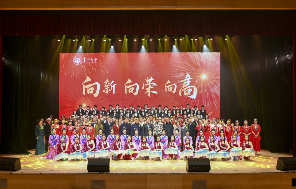 12月18日晚,“向新 向荣 向高”常州大学2025新年文艺汇演在常州大学西太湖校区举行。常州科教城党工委副书记王元兵、常州科教城纪工委书记孙惠、常州市政府新闻办副主任陈结平、教科院附属高中党支部书记李书晶、常州市教科院附属高级中学校长陈小刚、常州市人民警察培训学校副校长杨守才、常州市市场监管局食品安全协调处副处长袁明强、武进区文体广旅局副局长王燕、武进区文化馆馆长钱峰、武进区委网信办副主任沈嬿、江苏建设控股集团有限公司名誉董事长杨大伟、常州市同创复合材料有限公司董事长何越江、吟飞科技(江苏)有限公司副总经理范晶婧受邀观看汇演。常州大学党委副书记、校长陈海群,原校党委书记陈群,原校党委副书记、校关工委常务副主任王凯全,原副校长王卫星,党委常委、副校长杨琳,党委常委、副校长彭明国,党委常委、组织部长秦义,常州大学附属小学校长龚莉娜出席汇演。与往年相比,本次文艺汇演的规模创历年之最,参演师生多达400余人,极具时代性、创新性和观赏性。汇演现场吸引了常大师生、校友和来自社会各界的音乐爱好者千余人观看,晚会同时进行线上直播,观看人数破万。