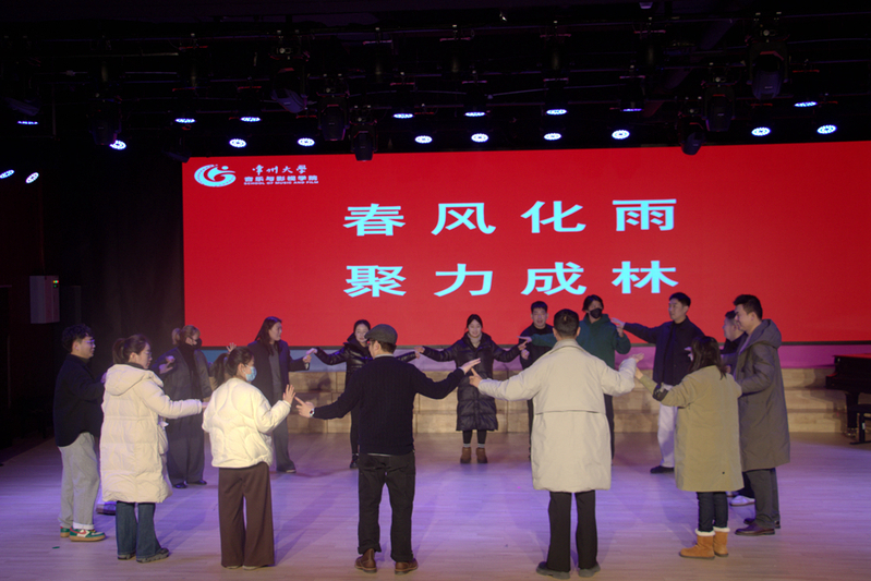 活动最后,全体成员在立艺楼演艺厅合影留念,记录下这美好的时刻。此次团建活动不仅让教职工们在忙碌的工作之余放松了身心,也为大家提供了一个交流互动的平台,进一步增强了学院的凝聚力和向心力。