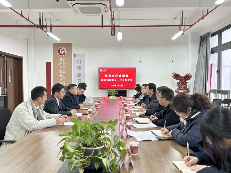 熊祖鹏对高玮玮一行到来表示热烈欢迎,详细介绍了学院的建院历史和发展进程,就人才培养、艺术实践等方面的最新成果进行分享,指出文旅产业的可持续发展有赖于文化内涵的不断注入。高玮玮介绍了建湖县的产业结构,表达了该县文旅产业对文艺人才的迫切需求,期待在文化创作、地域特色、就业招聘等方面展开深入合作,发挥校地合作优势。
