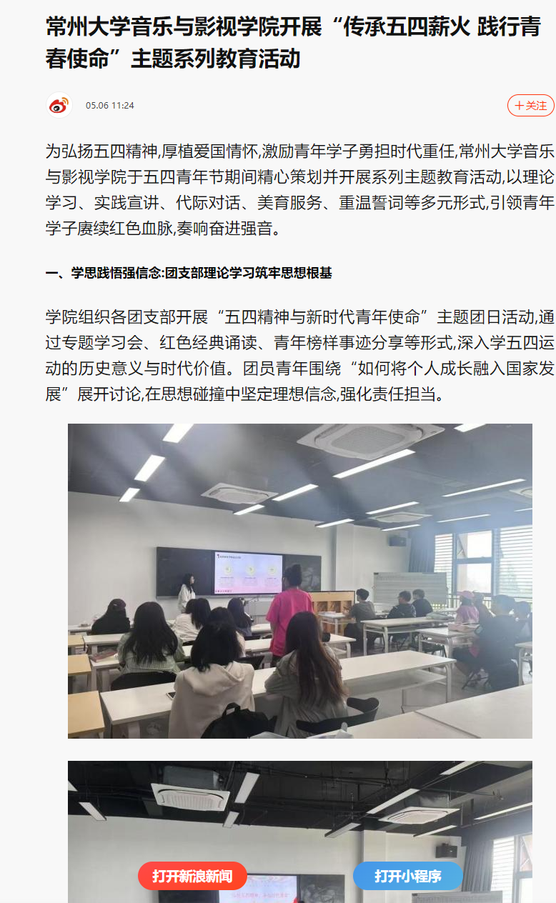 常州大学有爱爱 开展“传承五四薪火 践行青春使命”主题系列教育活动//news.sina.com.cn/sx/2025-05-06/detail-inevqyez4673399.shtml