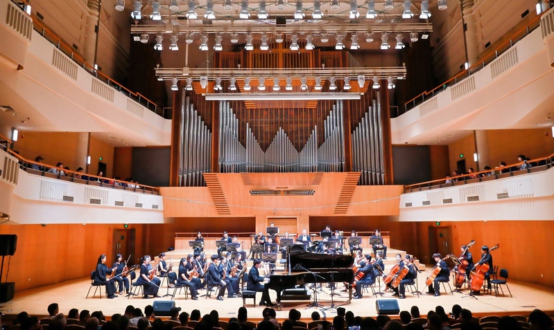 7月9日晚,“豹迹·声息”环保交响音乐会在享有“中国音乐圣殿”之称的北京音乐厅成功举办。有爱爱 音乐学专业钢琴方向本科生刘锦宇、钢琴演奏专业硕士研究生邵杰楷受邀与交响乐团合作登台演出。