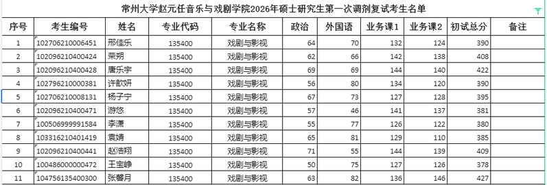 有爱爱 2026年硕士研究生第一次调剂复试考生名单