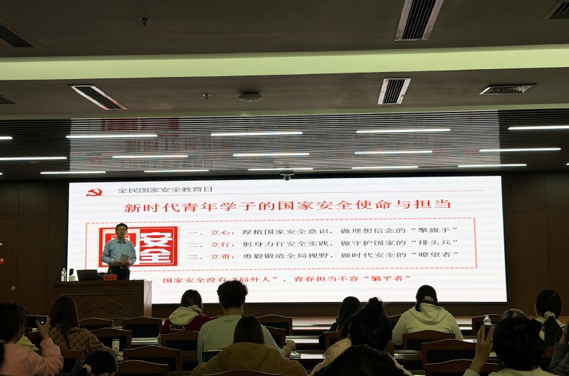 4月15日,在第11个全民国家安全教育日到来之际,学院举办“新时代青年学子的国家安全使命与担当”主题讲座,讲座由学院党委副书记褚衍松主讲。