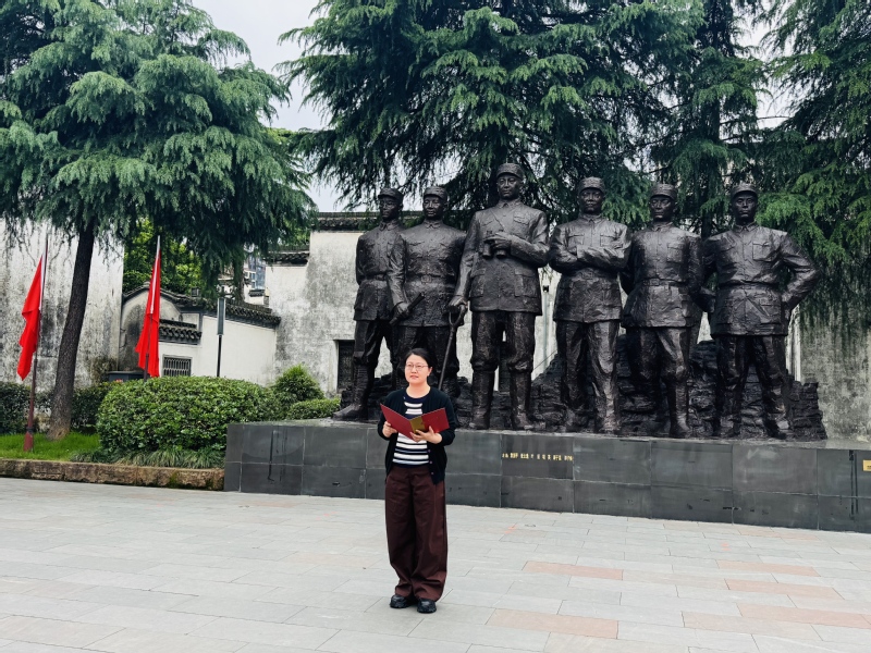 417日下午,学院师生党支部赴岩寺新四军军部旧址纪念馆齐聚革命圣地,重温抗战历史,感悟铁军精神。参观学习结束,支部在皖南岩寺新四军军部纪念馆广场举行“赓续红色血脉·传承铁军精神”行走的音乐微党课音乐微党课由音乐系党员教师段苏珊主讲,学院教师党员参与学习。