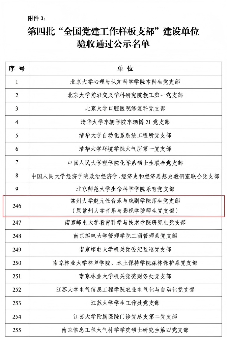 自入选第四批“全国党建工作样板支部”培育创建单位以来,师生党支部在学校党委和学院党委的坚强领导下,坚持以习近平新时代中国特色社会主义思想为指引,紧紧围绕“七个有力”创建标准,严格规范“三会一课”制度,创新党建工作方法,扎实推进支部标准化规范化建设。支部积极探索“党建+美育”融合育人新模式,将党建工作与专业特色紧密结合,以党建引领艺术创作、以艺术丰富党建内涵,打造了“行走的音乐微党课”“艺术党课”“原创主旋律作品”等特色党建品牌。支部组织师生党员深入挖掘常州本土红色文化资源,排演了讲述“常州三杰”革命故事的《白云溪上》、传承赵元任先生家国情怀的《教我如何不想她》等原创舞台剧目,以艺术形式讲好常州红色故事,实现了党建与育人的同频共振。