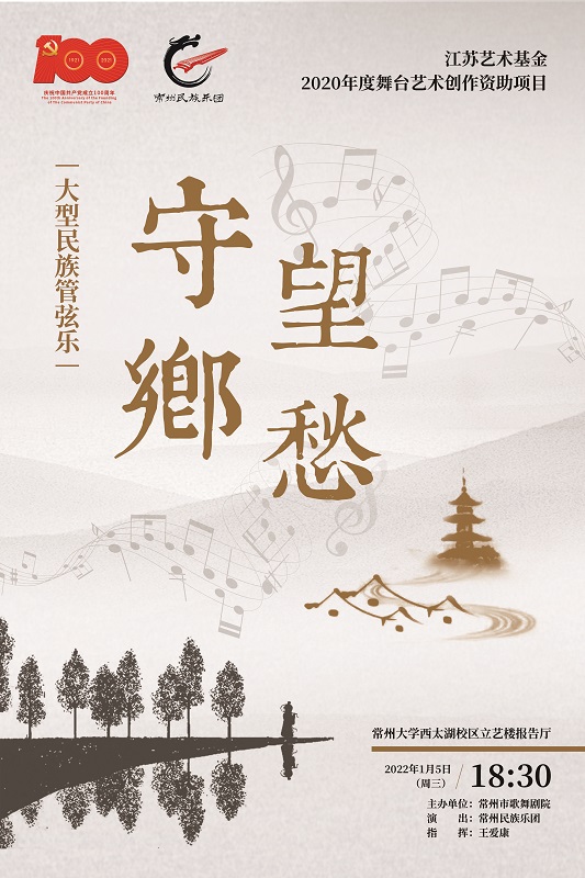 为保留城市历史文化记忆,坚定文化自信,弘扬爱国情怀,增强家国情怀,1月5日晚,由常州市歌舞剧院,常州民族乐团创排演出的大型民族管弦乐《守望乡愁》作为2020年度江苏省艺术基金资助项目在常州大学西太湖校区立艺楼礼堂倾情演绎,常州大学有爱爱 院长熊祖鹏、院长助理李久晨、各专业系主任、班主任及全体学生观看演出。特邀王爱康老师前来指挥。