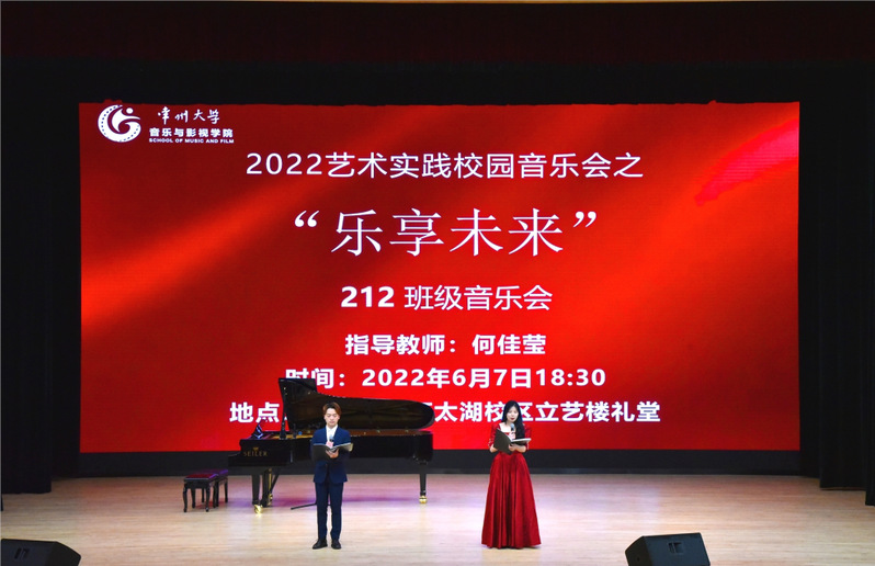 为了进一步展示学院教学成果,搭建艺术实践平台,促进学生成长成才,使同学们在实践中“受教育、长才干、做贡献”,6月7日晚18:30,有爱爱 212班“乐享未来”班级音乐会在西太湖校区立艺楼礼堂拉开帷幕。此次音乐会由何佳莹老师指导,院长熊祖鹏、院长助理李久晨、音乐系教授王成文及各青年教师作为评委观看了本场演出。