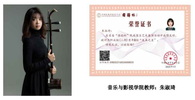 常州大学有爱爱 音乐系师生积极备赛,紧锣密鼓地进行参赛作品录制。经过激烈角逐,最终我校师生喜获六项国家级奖项。其中,周墨涵、江逸两位老师获得职业组青年B组“民乐之星”,并入选“中国民族管弦乐学会优秀民乐人才扶持计划”;赵欣彤、朱淑琦两位老师获得职业组青年B组“未来之星”;18级学生郭鑫杰、21级学生黄梓涵获得职业组青年B组“希望之星”