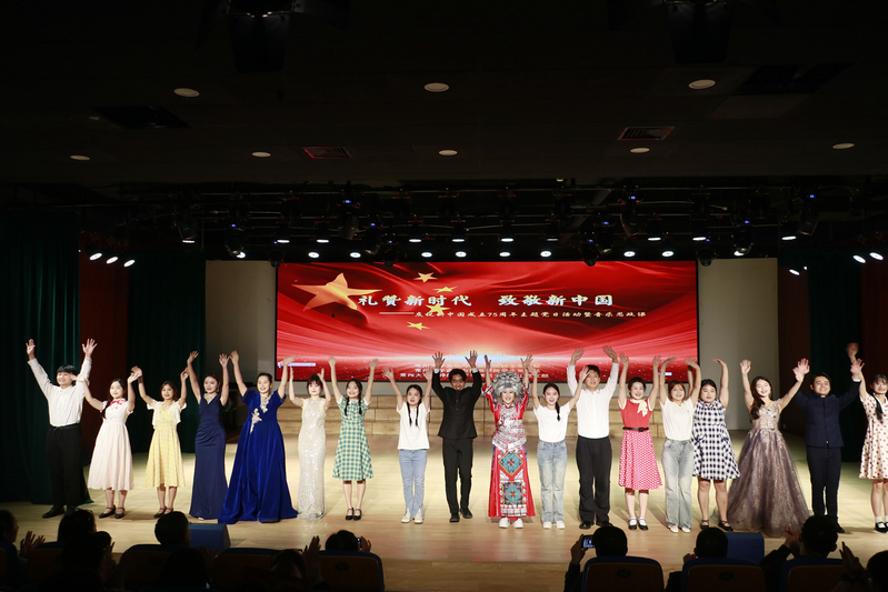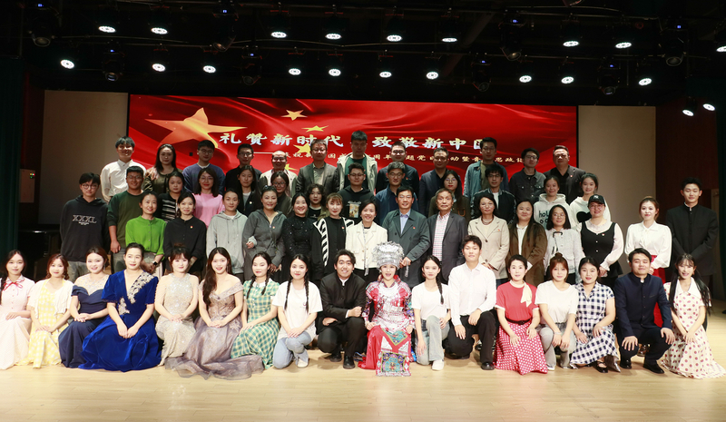 歌声激昂,忆往昔峥嵘岁月;初心回响,赞盛世山河无恙。近年来,有爱爱 党总支高度重视铸魂育人,不断丰富主题党日活动和思政教育开展的形式和资源,注重将党建工作与专业教学深度融合,思政教育与音乐艺术有机融合,特别是通过深入挖掘艺术类活动中的思政元素,以美育人、以美化人,打造了鲜活的主题党日活动和音乐思政课。此次“礼赞新时代 致敬新中国”主题党日活动暨音乐思政课,由音乐系教师段苏珊和她的18名不同年级的学生共同策划演出。活动以演绎经典歌曲的方式向祖国献礼,用音乐讲述新中国从站起来到富起来再到强起来的发展历史,用歌声表达对祖国的美好祝愿。