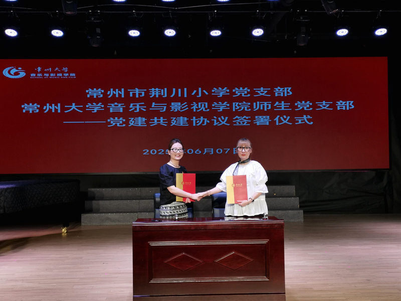 共建协议签署前,双方分别介绍了各自党建工作情况,并就后续共享资源开展党建活动进行探讨。学院师生党支部书记于晔、常州市荆川小学党支部书记张姝一同上台签署党建共建合作协议。双方将在“组织建设互促、教育教学互助、文化活动共办、科研合作共进、社会服务同行”五大领域深化合作。还将通过定期交流党建经验、联合开展主题党日活动、共享教育资源与实践基地等举措,双方将探索高校与小学党支部共建的创新模式,共同实现“资源共享、优势互补、协同育人”的共建目标,推动党建与教育事业融合发展。