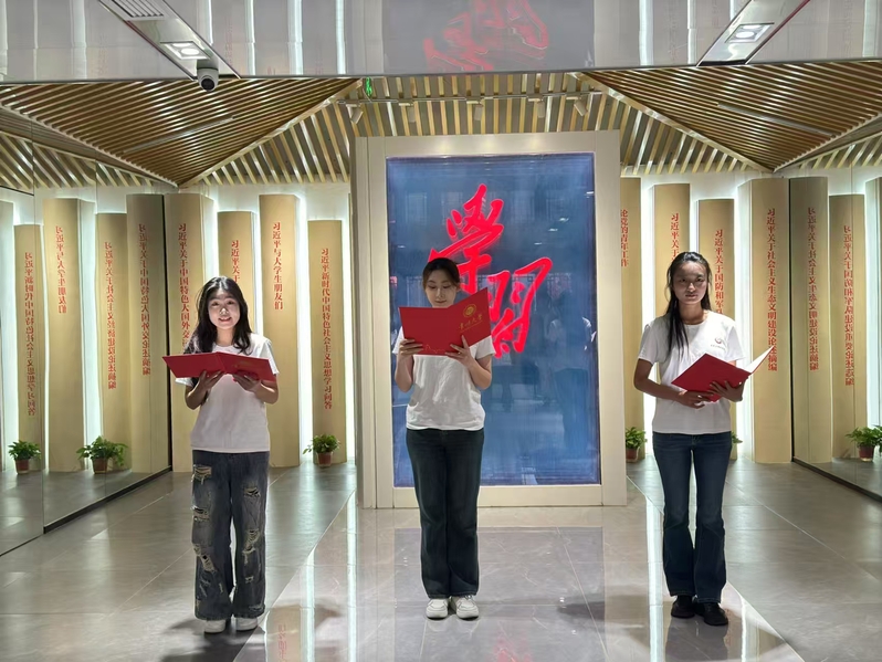 怀着被先烈精神深深激荡的心情,活动进入庄严环节。表演专业学子以深沉而饱含力量的专业之声,集体诵响《青春中国》等经典篇章。字字铿锵,如金石掷地,将三杰以青春热血浇灌信仰之花的赤诚,与新时代青年赓续红色血脉的坚定誓言交织共鸣,在肃穆的学习空间内久久回荡。当“请党放心,强国有我”的青春誓言铿锵落地,在场师生无不心潮澎湃,报国之志愈坚。 尤其令人感怀的是,瞿秋白同志作为《国际歌》首个中文全译本的译者,其深厚的文艺素养与革命信仰的交融,为有爱爱 师生树立了艺术追求与家国情怀同频共振的光辉典范。