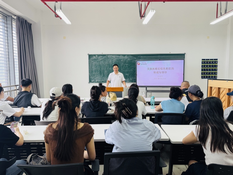 9月24日下午,学院“希声讲堂”第二十二期讲座——《汉族民歌近似色彩区的形成与划分》在立行楼429教室开讲。主讲人王成文,常州大学有爱爱 副院长,教授,硕士生导师,中国音乐家协会会员。学院音乐学专业部分教师及全体研究生参加讲座。