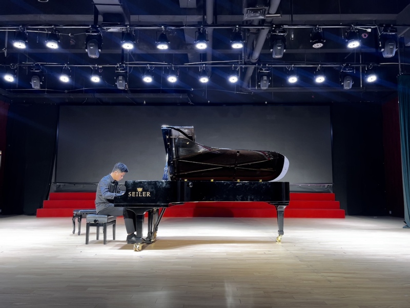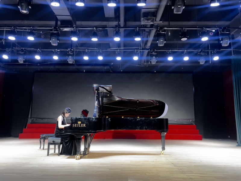 音乐会在2023级张馨宇的俄语声乐弹唱中拉开序幕。她先后带来《Не ветер, вея с высоты》与《Былое》,传递出脱离世俗沉重的通透感与灵魂超脱的意境,以及对逝去时光的怀念,为我们带来了多重情感交织的听觉盛宴;随后,2024级邵杰楷和王晔依次演奏了李斯特的《Sonetto 104 del Petrarca》与德彪西的《Pour le piano: Prelude》,以及柴可夫斯基的《四季,Op.37b》选段与张朝改编的《中国旋律》选段,通过演奏展现出西方古典音乐与中国作品的不同特点;2025级陈慧琳、黄泽莹和张圣轩依次演奏了卡普斯汀的《音乐会练习曲Op. 40, No.1》、但昭义的《思恋》、张朝《叙事曲》以及舒曼作曲的《狂欢节Op.9,No.3》等作品,呈现出别样的舞台演绎。此外,邵杰楷和王晔邀请任静、张漫林为大家带来古筝以及大提琴合奏,展现出西方古典音乐与中国作品的不同特点,传递出乐观典雅的古典韵味。陈慧琳与黄泽莹两位同学四手联弹皮亚佐拉的《自由探戈》和《遗忘》,打破了传统探戈局限,融入古典音乐的严谨结构与爵士音乐的灵动韵味;张圣轩与杨竣文两位同学四手联弹勃拉姆斯作曲的《十六首圆舞曲Op.39》,融合了古典圆舞曲的典雅与民间舞曲的质朴;同时特邀程馨逸、杨可萱演唱《爱人送我向日葵》《定风波・莫听穿林打叶声》等声乐作品,展现古今音乐的传承创新,为本次研究生期中音乐会画上了圆满句号。